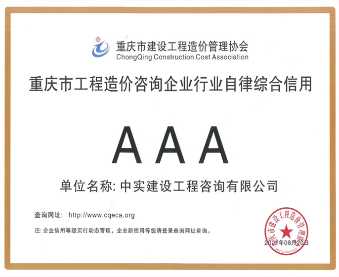 喜報(bào)!中實(shí)咨詢(xún)榮獲造價(jià)咨詢(xún)企業(yè)AAA級(jí)行業(yè)自律綜合信用評(píng)價(jià)等級(jí)